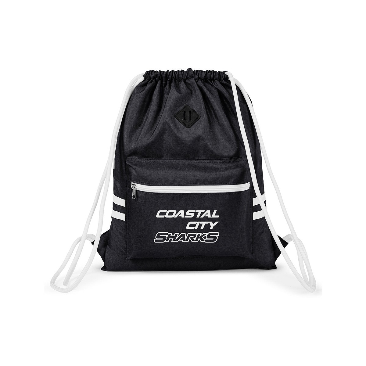 Whether you're cheering from the stands or hitting the gym, this cinch backpack is the perfect accessory to show off your team spirit. Thick comfortable drawstring cord straps. Front horizontal zippered pocket and side seam vertical zippered pocket. PVC lash tab. Hand wash cold. Recommended weight tolerance: 22 lbs. 14.5000" W x 18.5000" H