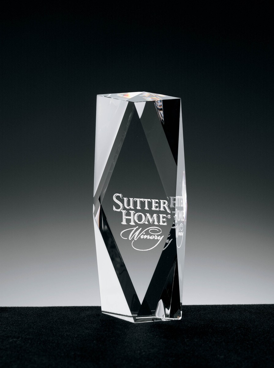 The Zyra I Small Crystal Tower is the perfect recognition piece for exceptional employees. Complies with Prop 65. 1 3/4" W x 4 3/4" H x 1" D