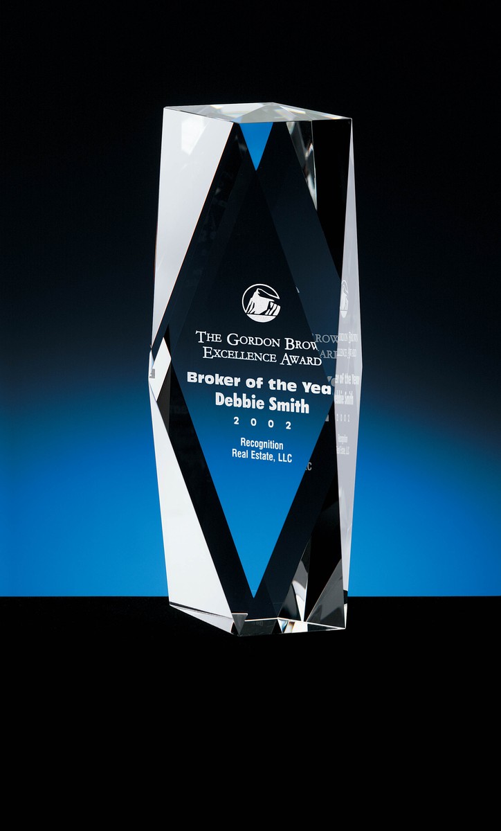 Etch the perfect message on the Zyra III, a clearly beautiful, large-sized tower crystal award. The recipient will surely appreciate the gesture. Complies with Prop 65. 3 1/2" W x 9 7/8" H x 2" D