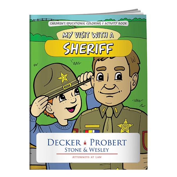 The Coloring Book: My Visit with a Sheriff tells the story of Officer Martin visiting a school where he meets a little boy who wants to be a police officer when he grows up. He helps the little boy learn how to stay safe in some very scary situations. The product is CPSIA compliant and has 16 pages of a complete story line. These creative characters teach valuable lessons. Don't forget to imprint a message or logo to the cover.