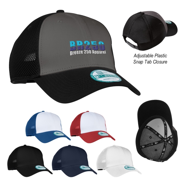 If you want to blow the lid off your next promotional campaign, hand out the New Era snapback contrast front mesh cap. Available in many colors and made from 100% cotton (front two panels) and 100% polyester spacer mesh (mid and back panels), this trendy, comfortable hat features six panels, medium profile, structured crown, pre-curved visor and an adjustable plastic snap-tab closure for one-size-fits-most functionality. Add a customized imprint of your brand logo to create a must-have promo gift for any business.