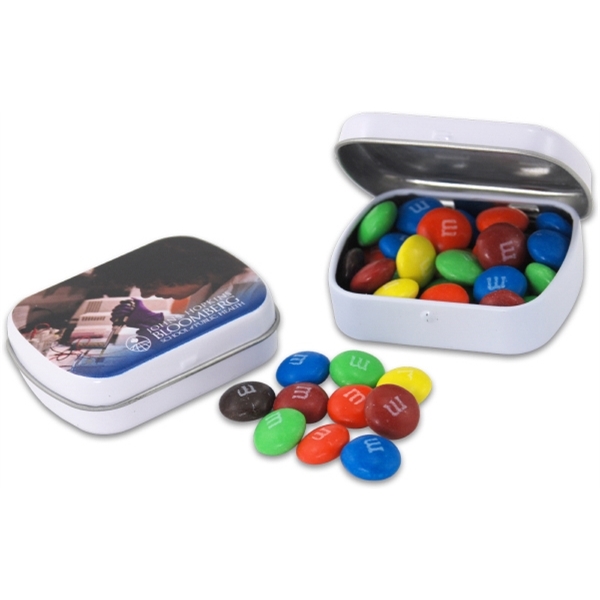 A gift anyone would be honored to receive! With your logo imprinted on the top of this hinged tin you can create a unique and distinctive gift for loyal customers, welcomed guests or hard-working employees. Filled with assorted chocolates, this stylish tin will delight recipients at any occasion. A variety of imprinting colors provide ample opportunity for personalization. A treat that's ideal for holiday celebrations or corporate events!
